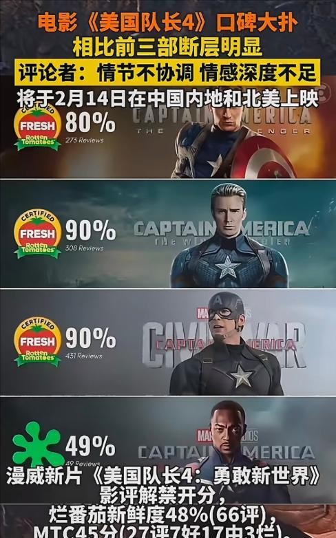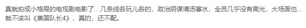 【2】《13亿大片上映就扑了!《美国队长4》五大硬伤,观众评价一针见血》