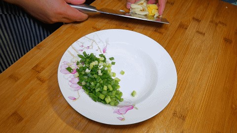 7.待水分熬干后关火下入小葱花,翻炒一下盛出备用。