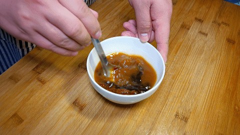 3.调一个酱汁,碗中加入20克黄豆酱,加入40克甜面酱,再加入适量清水,把调料搅拌化开。