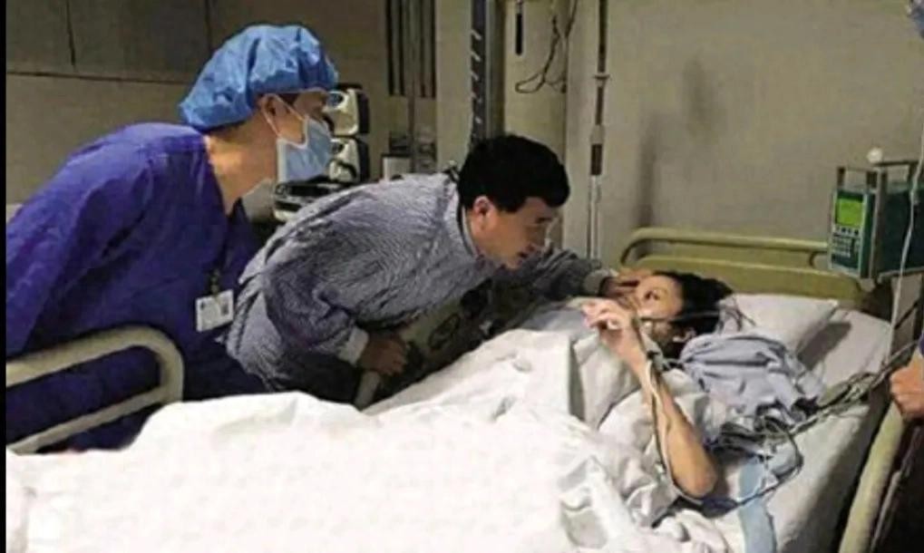 2015年,姚贝娜病逝前的一张照片,昏迷前签下了捐献角膜同意书