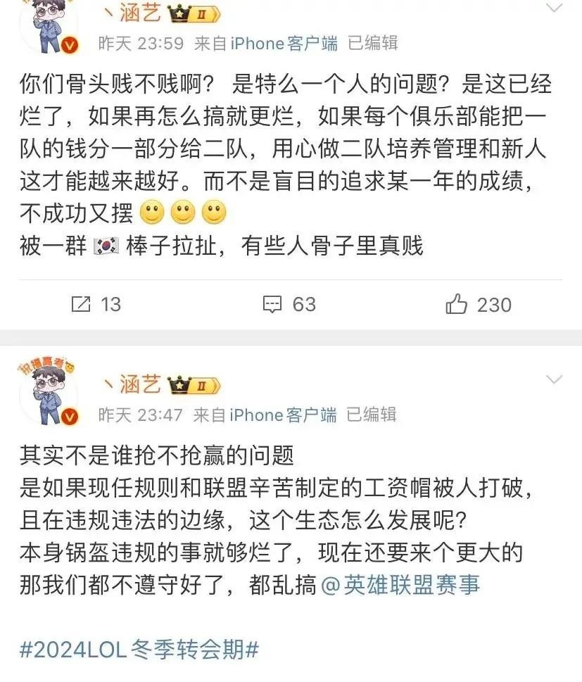 这起事件,也引发了业内人士的广泛关注。知名评论员涵艺就公开点名批评联盟官方,呼吁加强对转会市场的监管,严惩违规行为,维护LPL赛区的公平竞争环境。