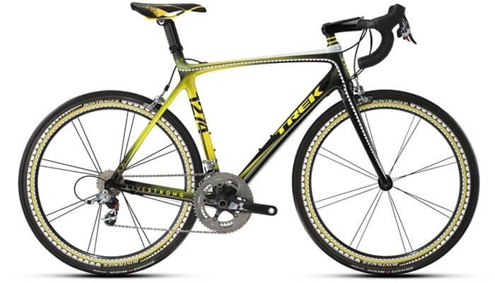 2005年,英国公司Trek Madone发布了一个名为“七颗钻石”的模型。这辆自行车是为了纪念Lance Armstrong在环法自行车赛上的第七次胜利而设计的,该自行车将107颗钻石制成的珠宝嵌入碳纤维车架,其中7颗代表数字“ 7”。车架前面是一盘白金和黄金,可增强自行车的光泽和魅力。