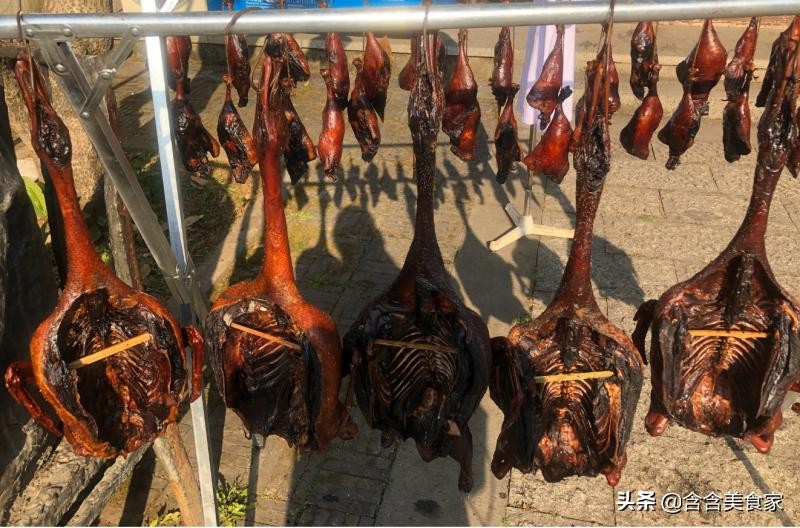 松岗腊鸭是一道广东省深圳的传统名菜,每年立冬前后,人们就开始忙着做腊鸭了,熏得黄黄的,晒得干干的,闻着香香的,是餐桌上的美味,鸭子脱骨腌制自然晾晒风干,炒着吃或者焖饭都很好吃。