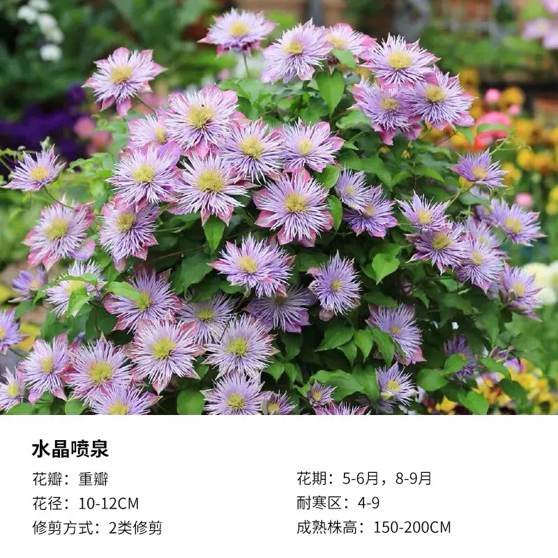 值得入手,美如画的铁线莲十二品种是巴黎风情、瑞贝卡、博士、大河、蓝光、约瑟芬、啤酒、魔法喷泉、乌托邦、银币,水晶喷泉、宽皇