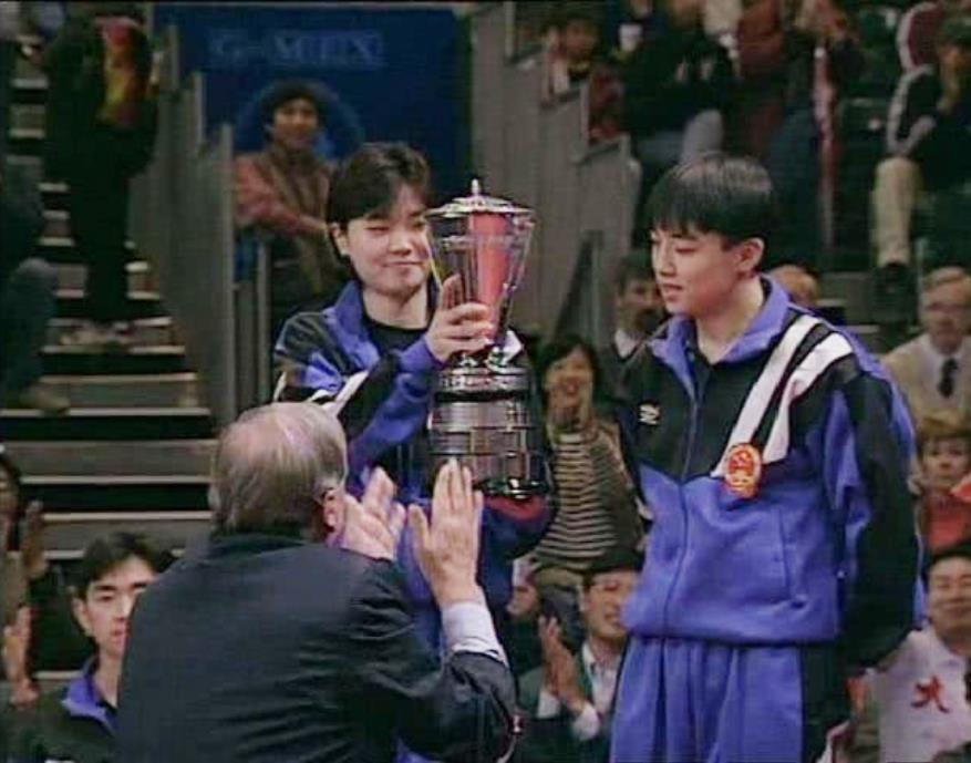 1997年5月4日晚上9时40分,混双决赛在曼彻斯特体育馆打响,由邬娜/刘国梁对阵邓亚萍/孔令辉。