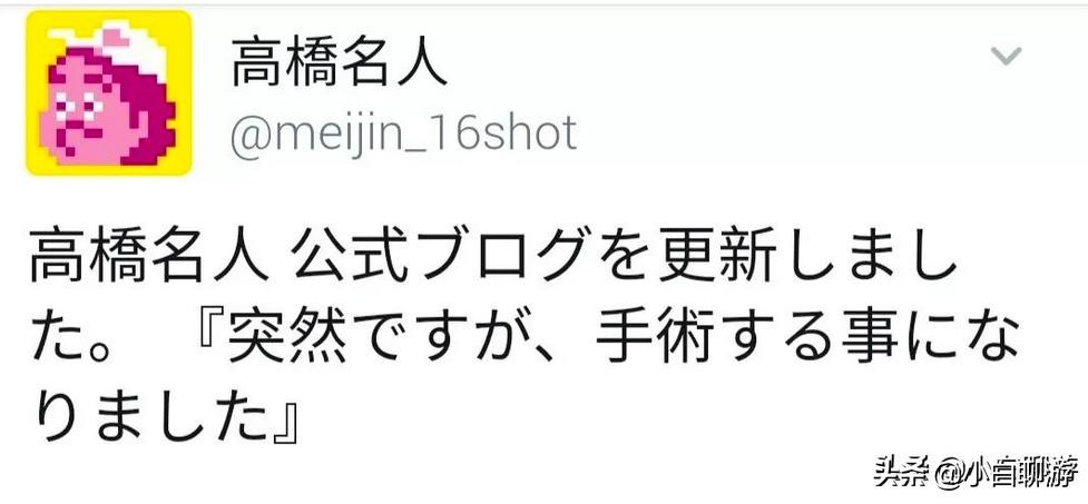 今年6月,高桥名人在博客中宣布自己将接受右手手术