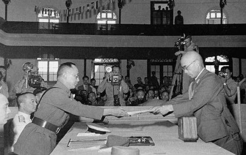 抗日战争全面爆发以来,先是由于国民党当局的不抵抗命令,致使我国丢失了东北的大片领土。蒋介石更是提出了“攘外必先安内”的口号,消极抗战。1945年8月15日,在日本宣布无条件投降之后,在同一天蒋介石就立即发表《抗战胜利告全国同胞暨世界人士书》并表示对日军“不念旧恶,以德报怨”。
