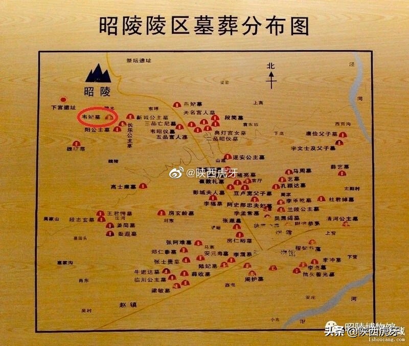 韦贵妃墓位于陕西省礼泉县烟霞镇陵光村北的冶姑岭上,因山为墓,西北距昭陵陵山仅一沟之隔,是昭陵迹二百座陪葬墓中距离昭陵最近的一座墓葬。