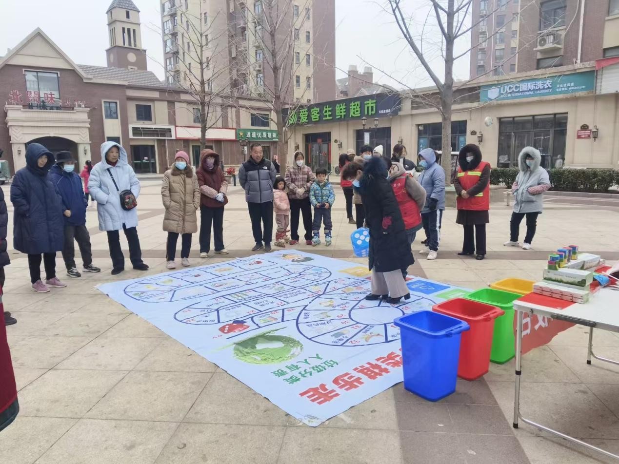 为深入推进垃圾分类全民行动,提升居民环保意识,2月22日,在郑州市惠济区城管局正确指导下,新城街道办与开元社区联合湖北联投城市运营公司在天伦庄园开展“寓教于乐助环保,垃圾分类“棋”步走”宣传活动。活动通过趣味游戏与知识科普相结合的形式,吸引广大居民热情参与,在欢声笑语中掀起垃圾分类学习热潮。
