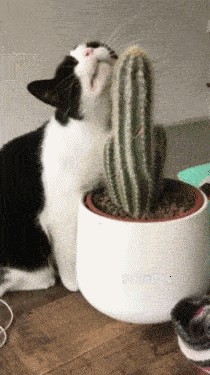 猫咪是在一起仙人球上抓痒痒吗?这种方式应该很带劲吧?