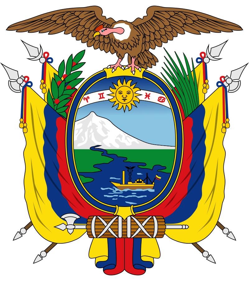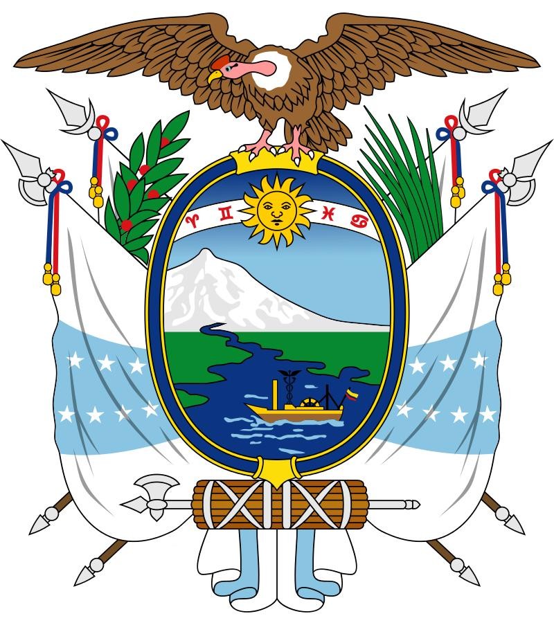 国徽为椭圆形盾徽。绘有钦博拉索山、瓜亚斯河和一艘以河名为名的船,船的桅杆为商神杖,象征商业。太阳后的四个星座象征1845年的三月革命。盾上方有一振翅的安第斯神鹰,盾下有一束棒,两侧有国旗四面和月桂、棕榈枝条装饰。
