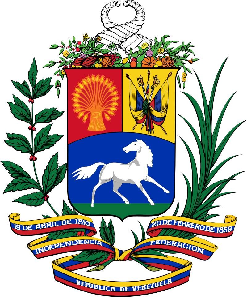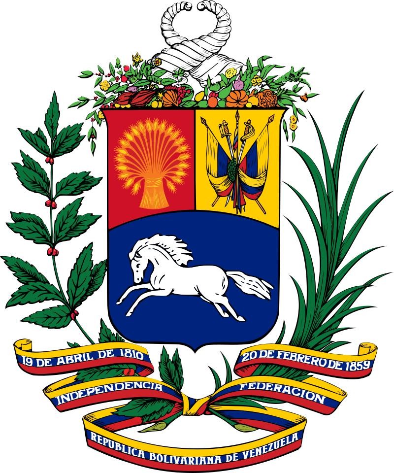 国徽中央图案为盾徽,左上角红地,绘有二十株小麦捆在一起,代表二十个州的团结。右上角黄地,绘有剑、佩剑、三枝长矛和两面国旗,以象征胜利的月桂绑起。下方蓝地,绘有一只往左方奔跑的白马(这是前总统乌戈·查韦斯在2006年修改的,但不为反对派承认)。三者加起来是国旗的颜色。盾徽被月桂和棕榈枝条。盾上方有两只丰裕之角,流出蔬菜、水果和鲜花。由国旗三色构成的绶带书有国名和“1810年4月19日、独立”和“1859年2月20日、联邦”。