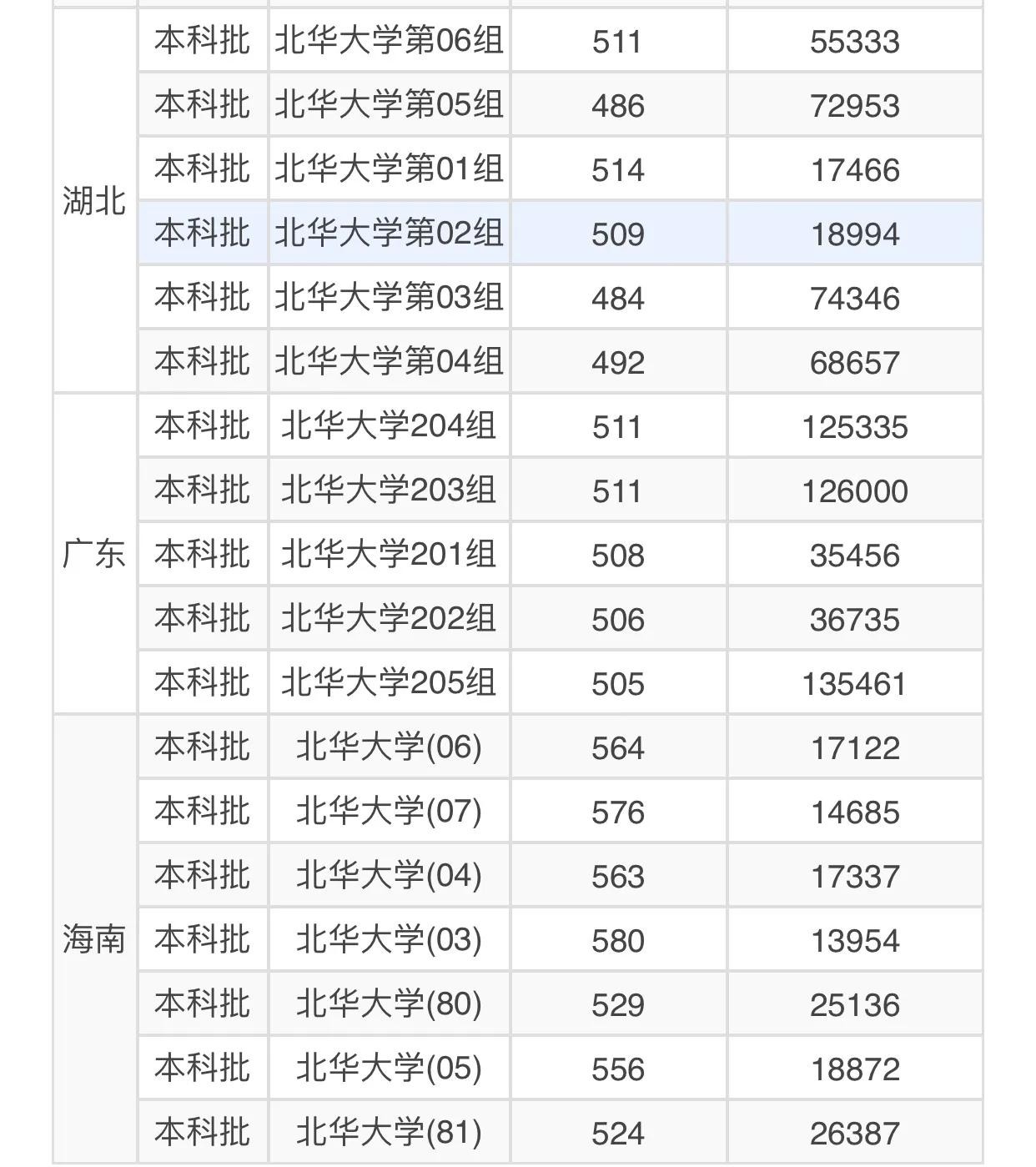近三年北华大学理科在四川招生分数、省排名及招生人数