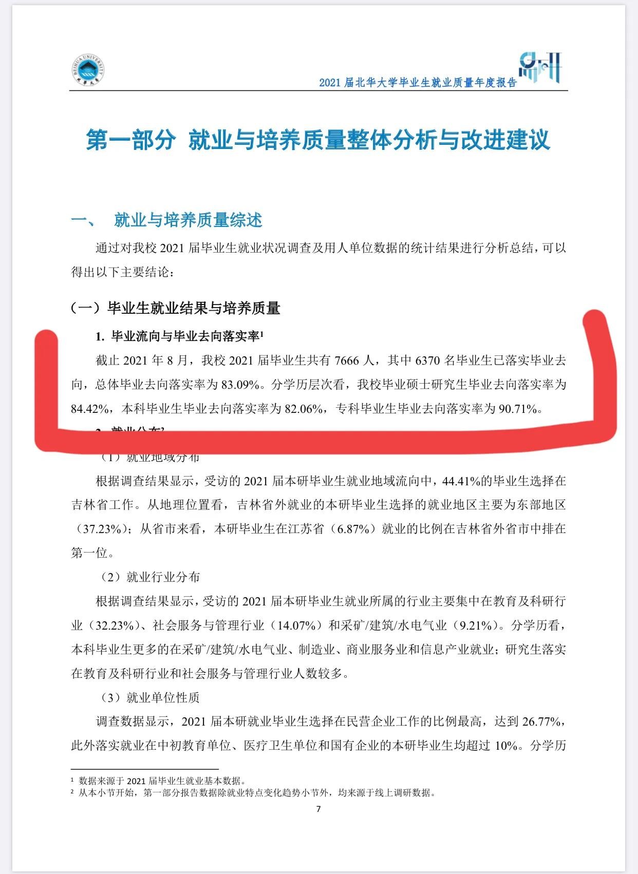 截止2021年8月,2021年毕业生总体去向落实率83.09%,其中研究生毕业去向落实率84.42%,本科生毕业去向落实率82.06%,专科生毕业去向落实率90.71%。