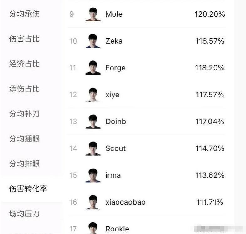 虽然其他几项数据中规中矩,但是近期肉鸡的打伤害能力,比起以往可是相差太多。之前的肉鸡是那种“吃草挤奶”的中单选手。但现在是“吃草啥也挤不出”。比如说在伤害转化率这一栏上面,肉鸡的伤害转化率仅有109%。排在当前LPL所有队伍中单的倒数第一。比小草包还要菜。本以为小草包已经是LPL最菜的中单了,但让人没想到的是,竟然有人的数据,比小草包还要拉胯。