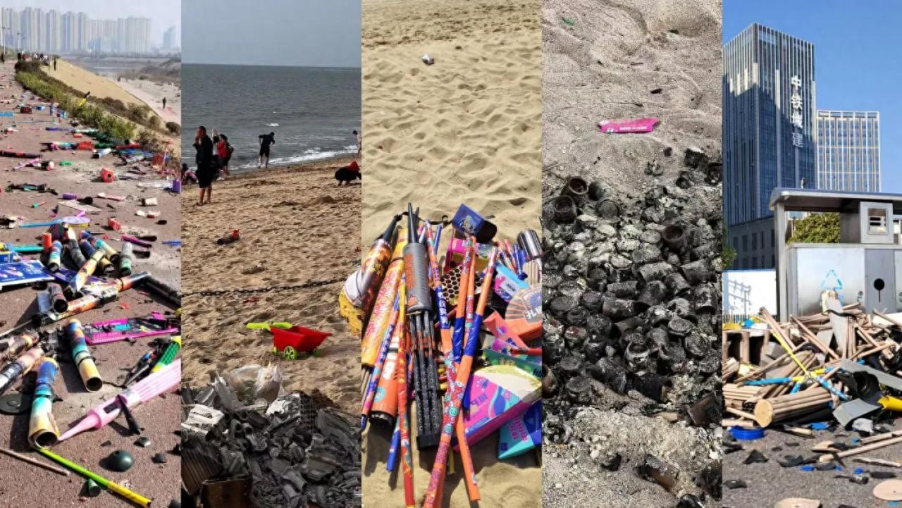 越来越多的城市解禁了烟花燃放,烟花的喧闹也体现在垃圾上:越来越多烟花集中到空旷的河边燃放,使得河流遭了殃;固定底座式的礼炮烟花有所遇冷,而新涌现的网红“加特林”烟花更便携,也带来更细碎的垃圾……