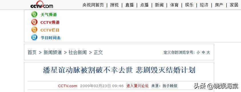 央视网2009.2.23——潘星谊动脉被割破不幸去世 悲剧毁灭结婚计划