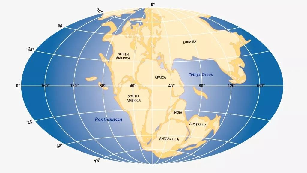大约3亿年前,地球上没有七大洲,而是一个巨大的超大陆,叫做泛大陆,它被一个叫做泛大洋的海洋包围着。