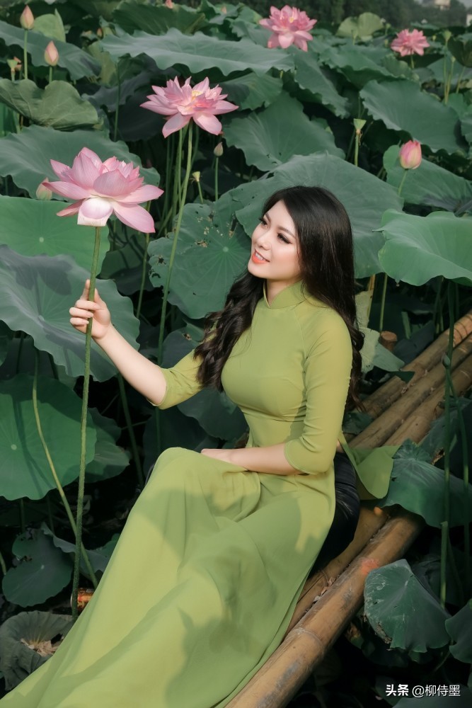 还有就是,模特的衣服,与背景中的荷叶,颜色相近。