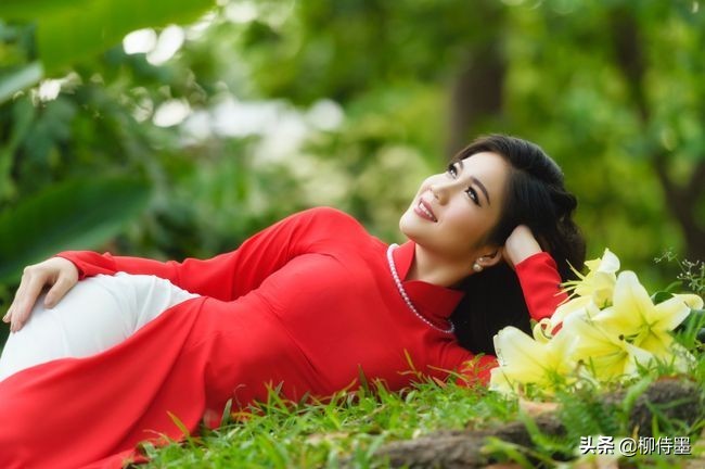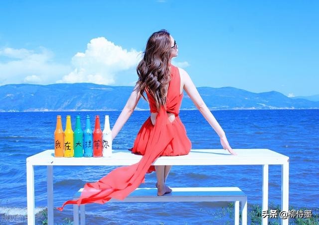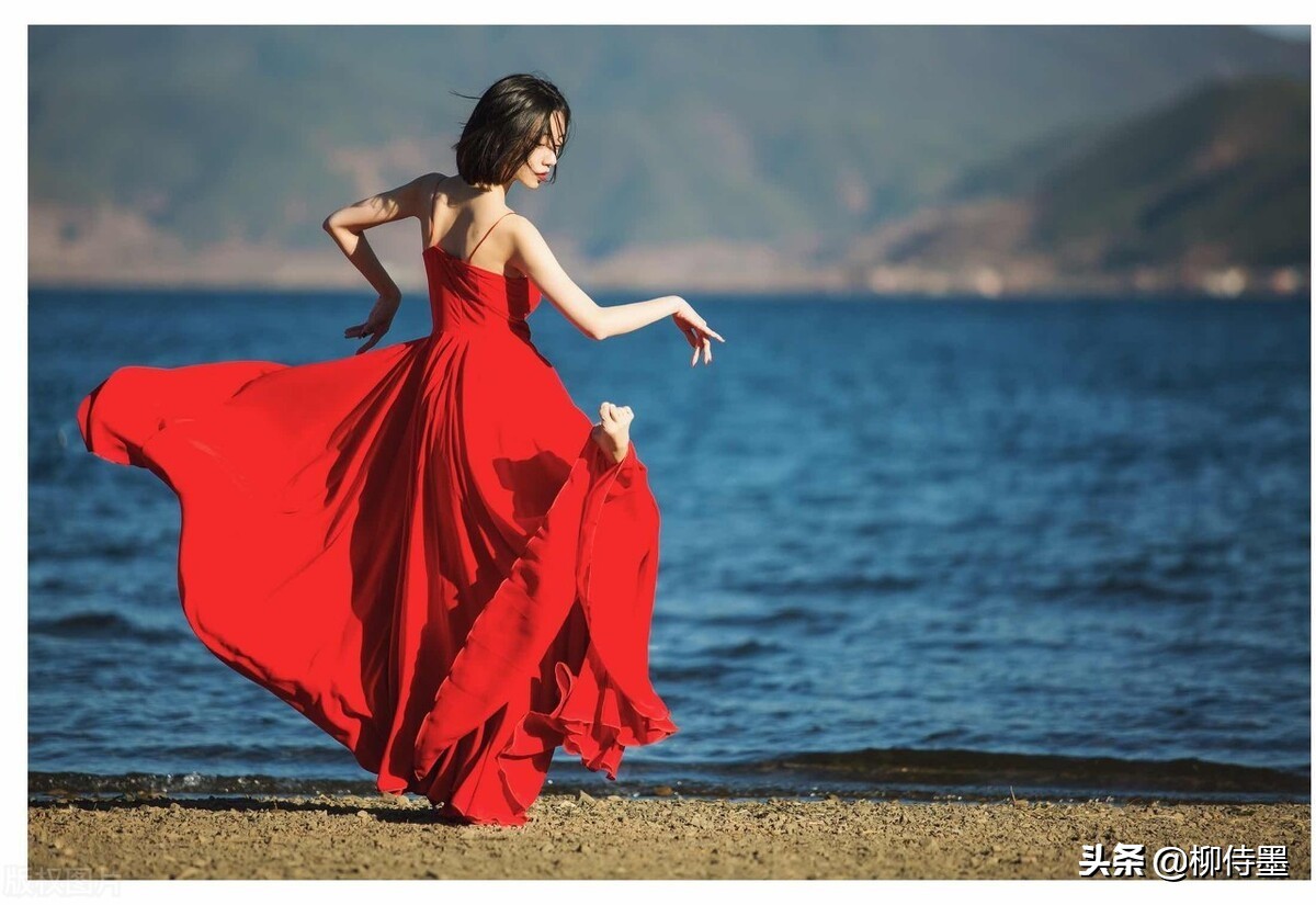 那还用说?蓝蓝的天空,蓝蓝的水面,娇艳的红裙子,漂亮的模特。