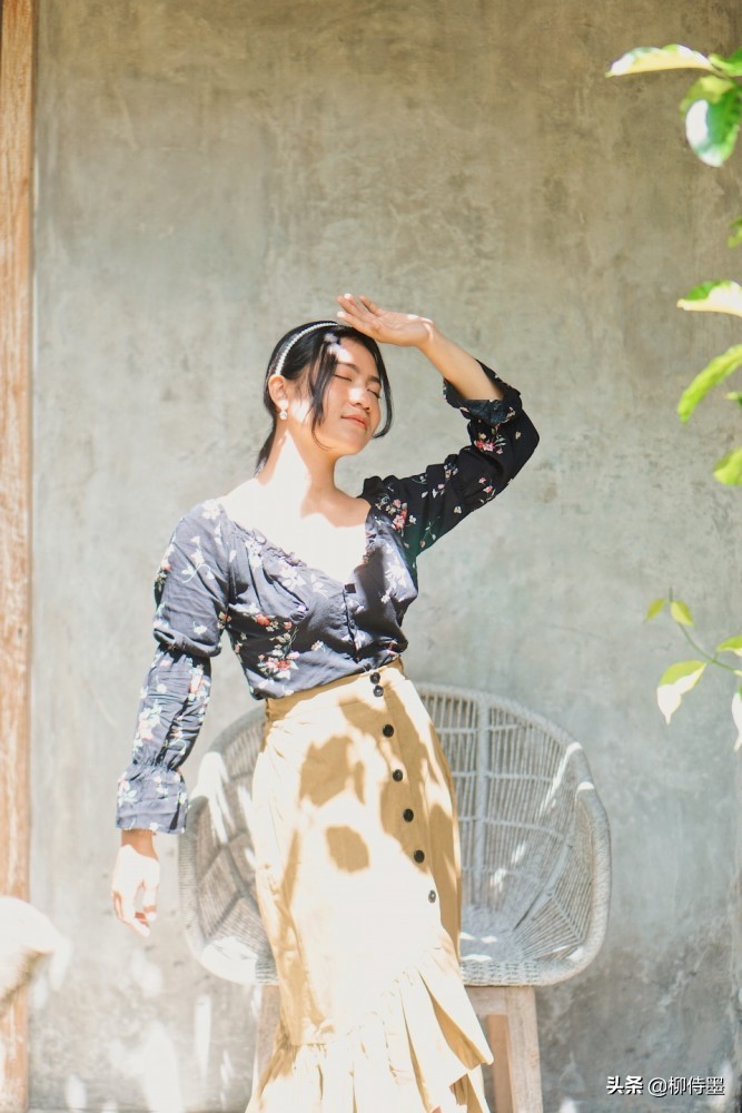 然后缩小景深范围,用大光圈或者长焦镜头拍摄,让模特与背景处于不同焦平面上,把模特与背景“剥离”开来。
