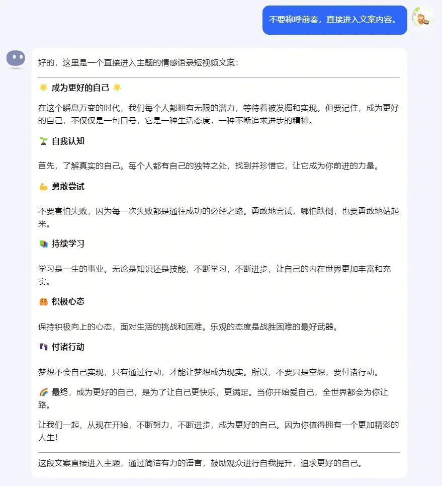 提示词:不要称呼前奏,直接进入文案内容。