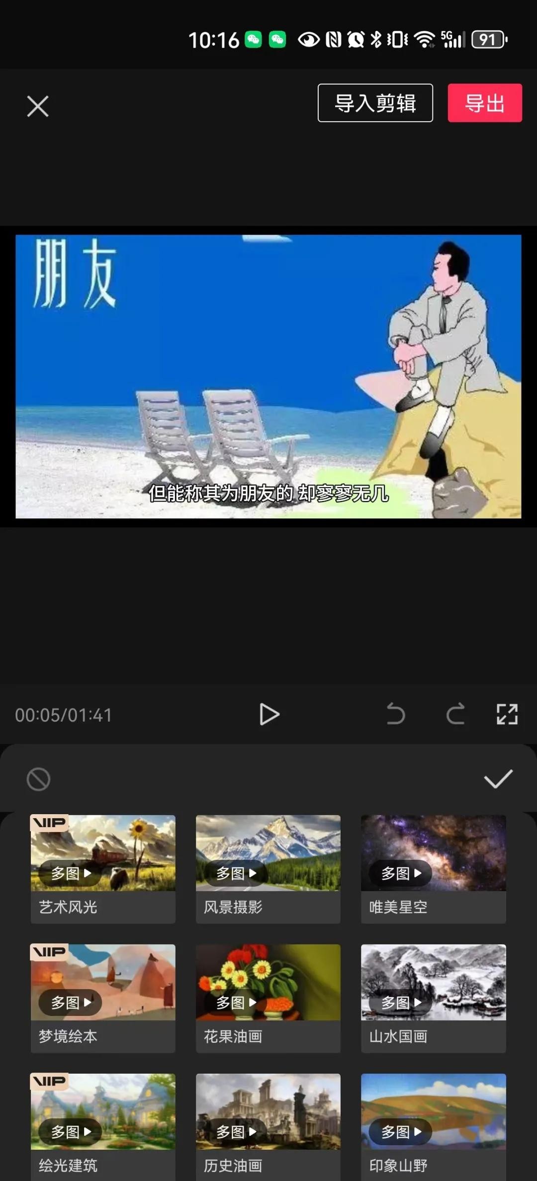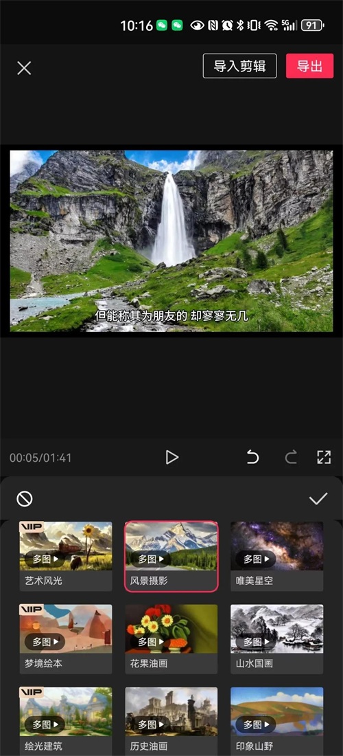 ③ 用剪映风格套图来保证视频风格都是风景图片。
