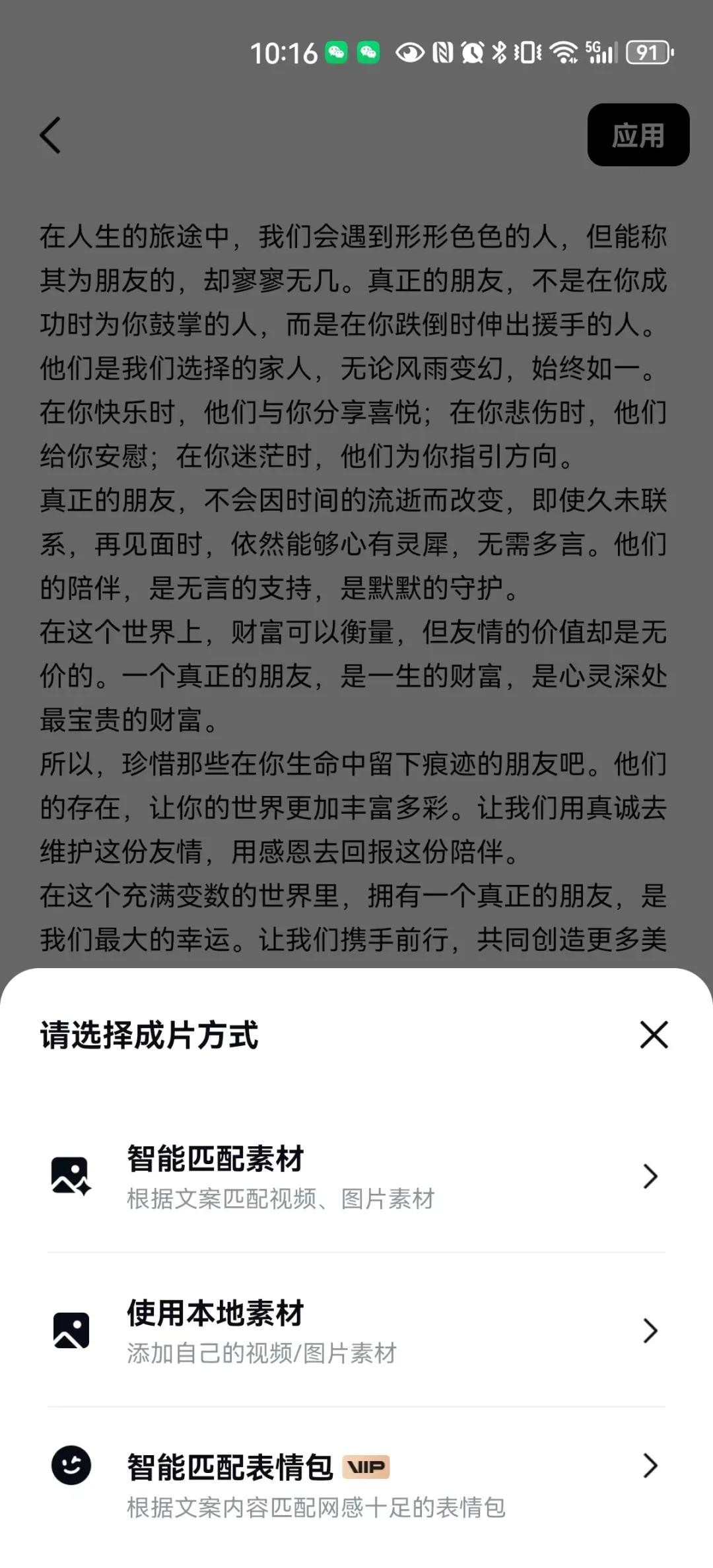 ② 用剪映图文成片快速生成短视频内容。