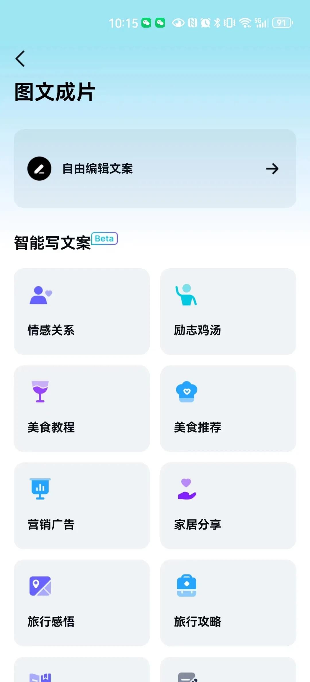 进入图文成片界面,点击【自由编辑文案】。