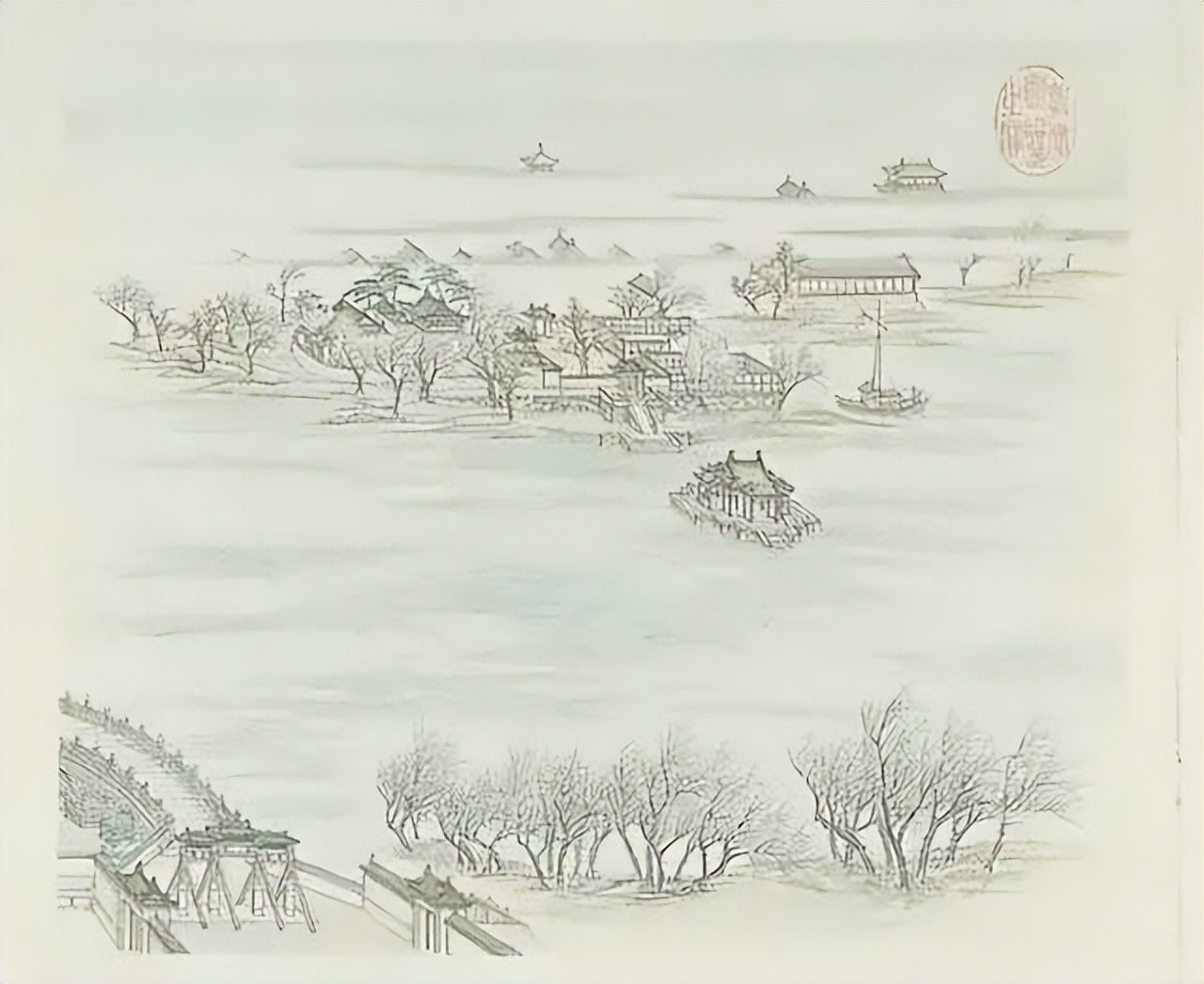 清代张若澄绘《燕山八景图册·琼岛春阴》