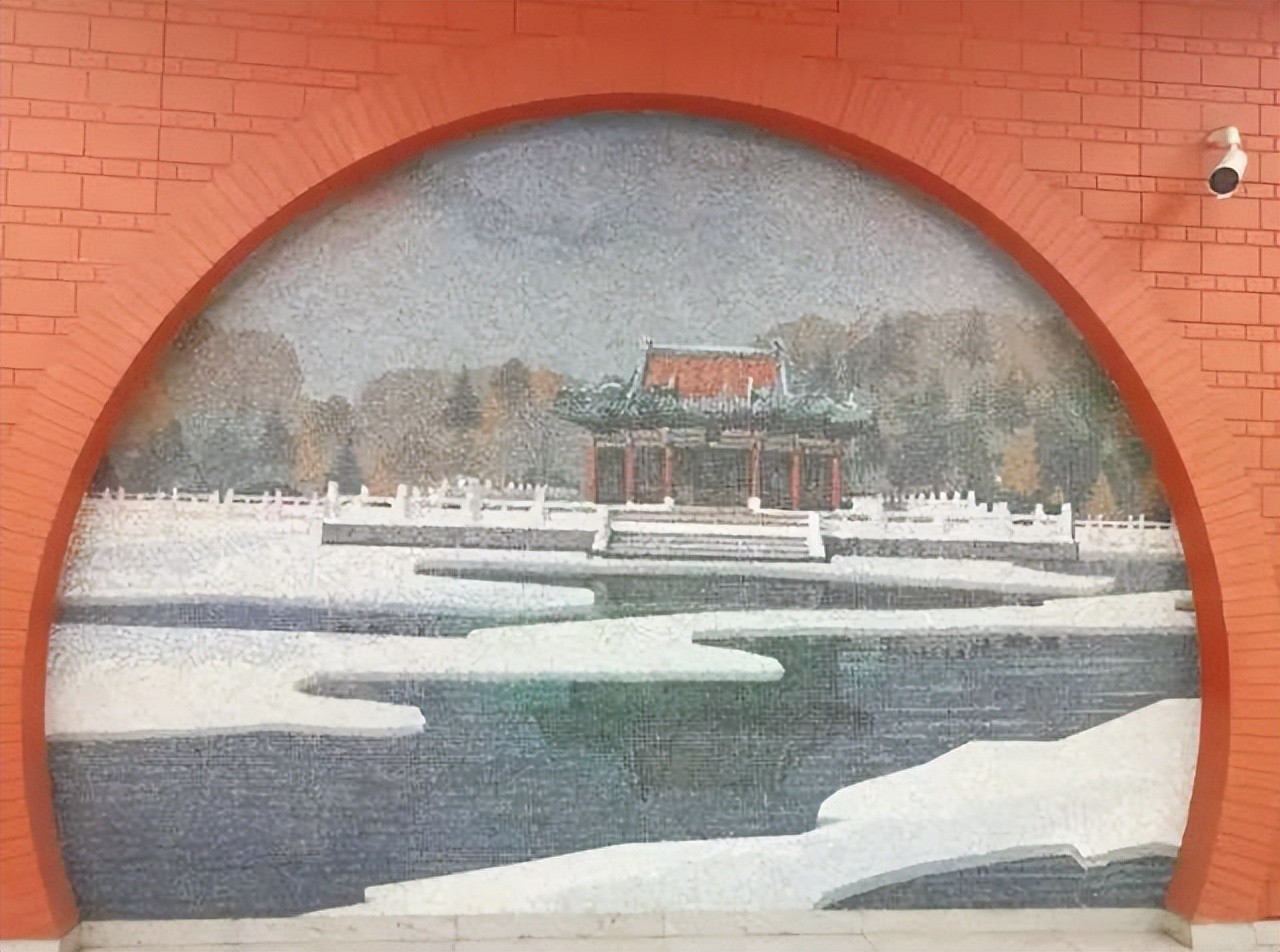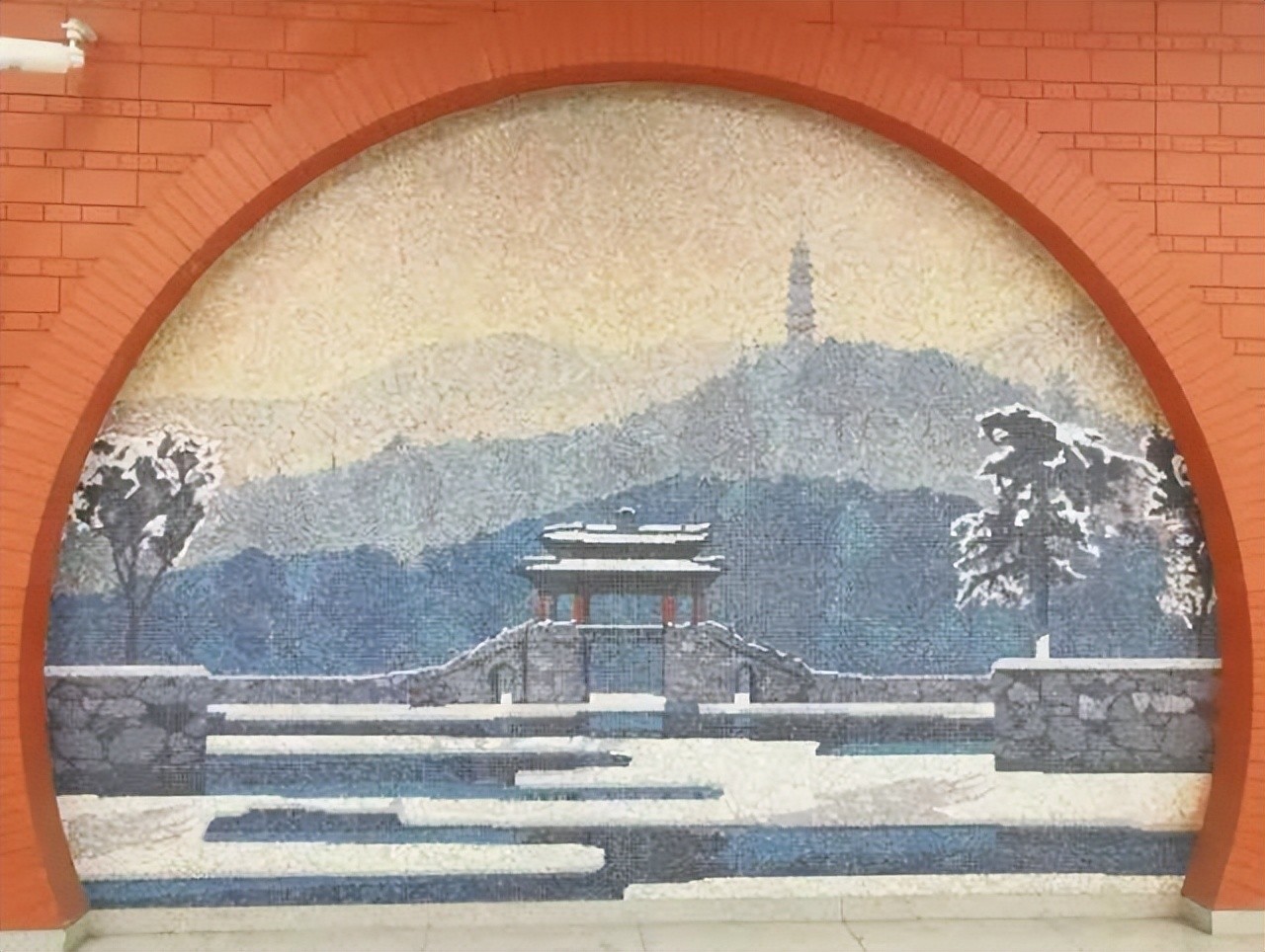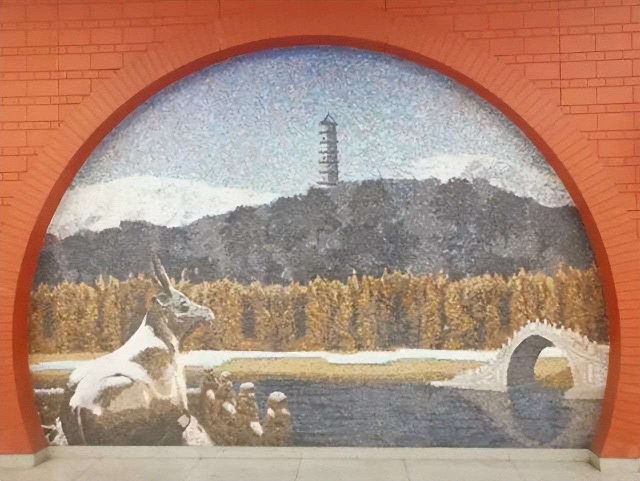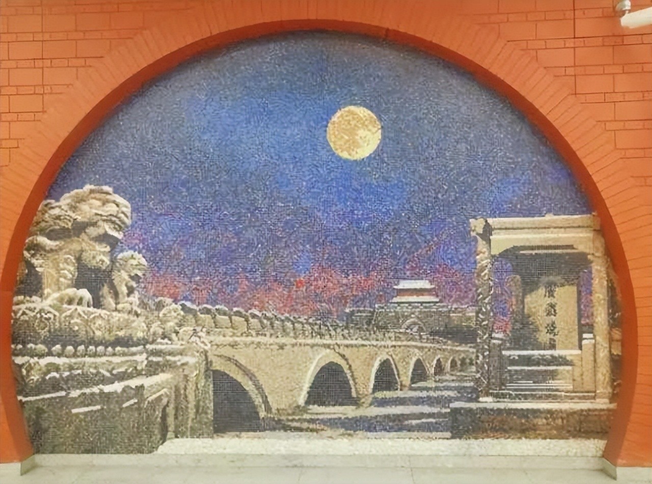 在北京地铁6号线的杨庄站厅内,清乾隆十六年御定的“燕京八景”在此艺术再现。“燕京八景”不仅是老北京城内著名的八大景点,而且对于后世的风景点建设也产生了重要影响,不断推动着园林建设的发展。