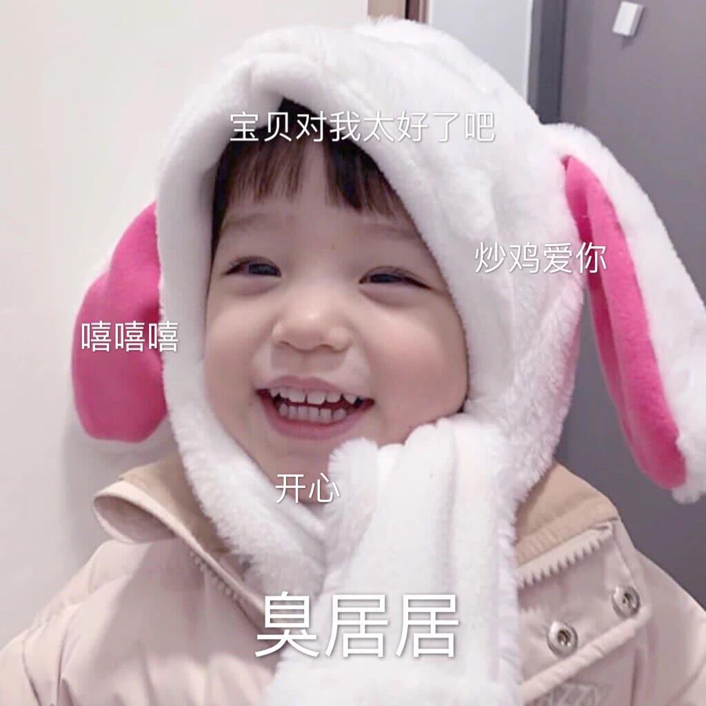 其实小可爱也是可以很开心的,没事对你撒娇也是甜甜的。这张表情包中的小萌娃戴着一个粉色的兔子耳朵的帽子,不留神就会被这个笑容晃了眼睛!不要生气了,都是人家不乖,惹你生气了嘛!是不是很可爱呢?