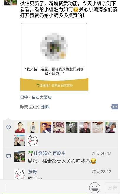 发现这个更新还是在昨晚小编下班回家发现应用市场提示微信可以更新,我更新后发现赞赏功能,小编还亲测了下赞赏功能。