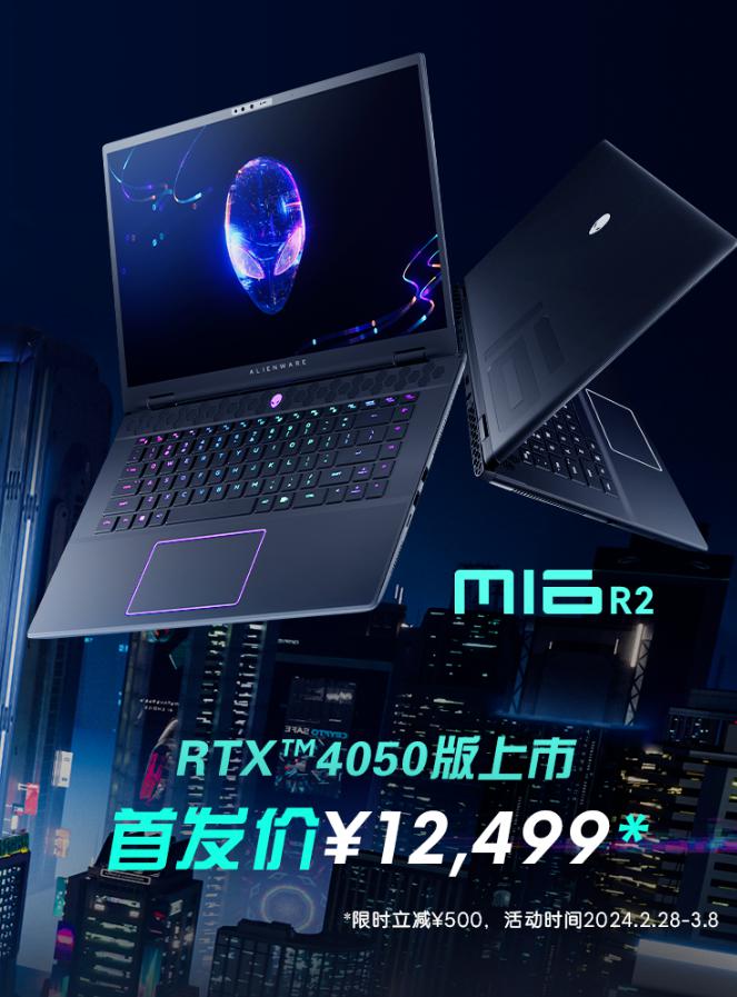 外星人 m16 R2 笔记本 RTX 4050 版已在官方商城上架,首发价 12499 元,活动时间截至 3 月 8 日。