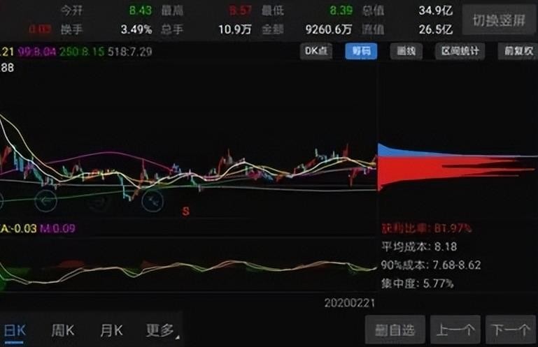 (1)90%成本5.5-6.59,集中度为9.02%,表示的是90%的投资者买入成本区间在5.5-6.59,集中度为9.02%。