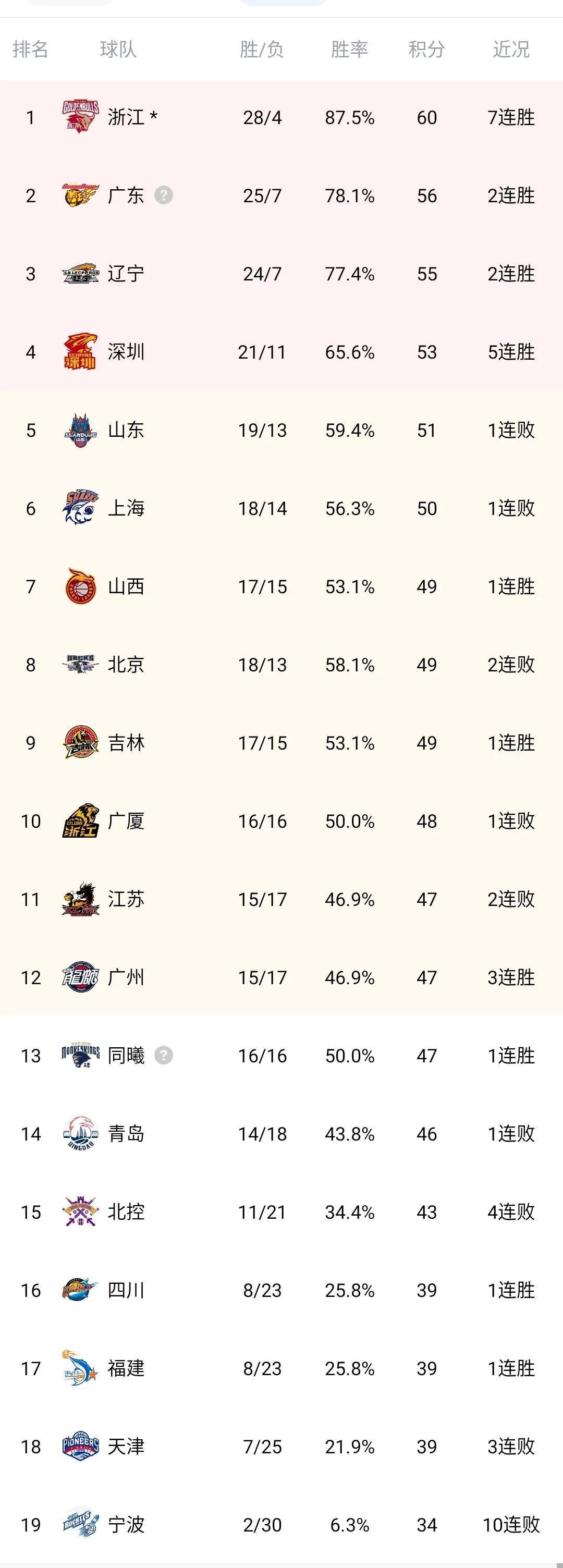 北京目前遭遇两连败的颓势,球队状态跟上海类似,处于低迷,近7轮仅1胜6负的战绩,前期累积的分数让其排名仍然守住了前八的位置。本场面对垫底的副班长宁波,不需多分析,没有任何理由输球,结束连败,夺回第7的位置应该是水到渠成的事。宁波连败纪录将会继续扩大,首支无缘季后赛的球队也非他莫属。