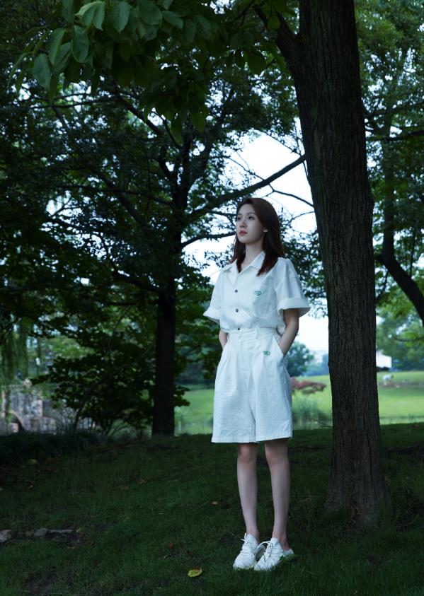 同样是白色系look,但裙装造型和裤装打扮,还是有很大区别的;这次王子璇穿着一套白色系裤装look出镜,看着就很清雅大方;短袖上衣有点类似衬衣版型,开衫效果在前面用黑色纽扣点缀,增添些许精致亮点;下面则搭配同色休闲短裤,五分裤阔腿裤版型,将双腿衬托得更纤细修长,脚踩白色休闲鞋,整体look清爽简约,还是很有魅力的。