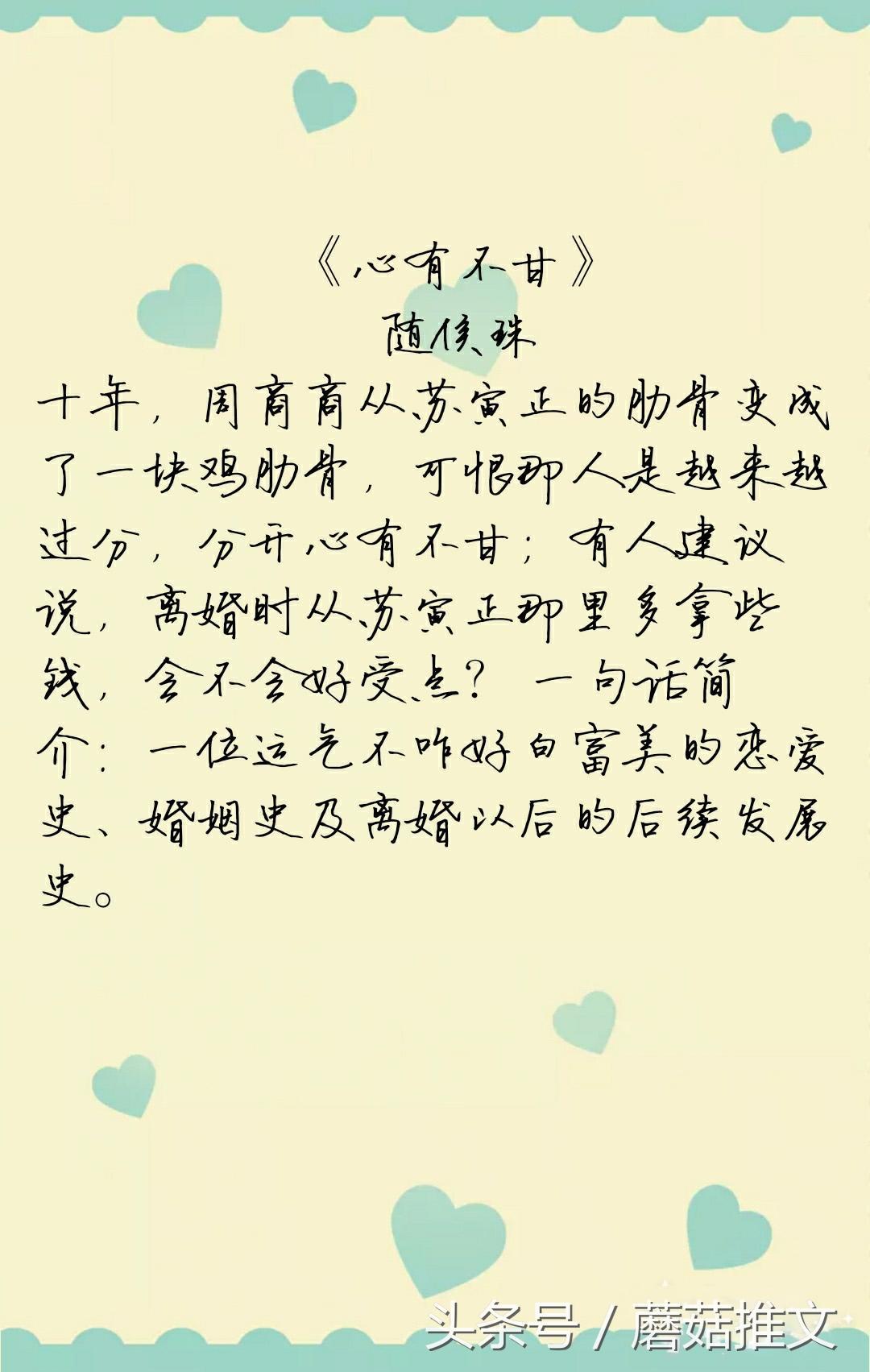 这本书真的很虐啊,男女主是青梅竹马相知相伴10多年,最后还是逃不过男主出轨,然后两人离婚。男二一直喜欢着女主,最后女主和男二结婚,生下了一对三胞胎,想不通的是男主自杀了。。。。