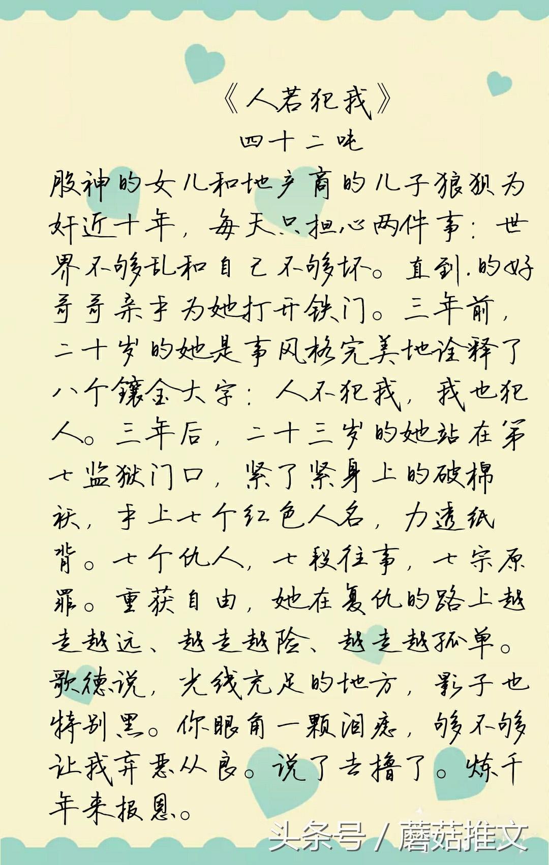 男主从小宠着女长大,纠缠了彼此15年,最后因为一些原因把女主送检了监狱三年,最后男主把自己给作死了。。此文作者脑洞很大,很有新意,强推!