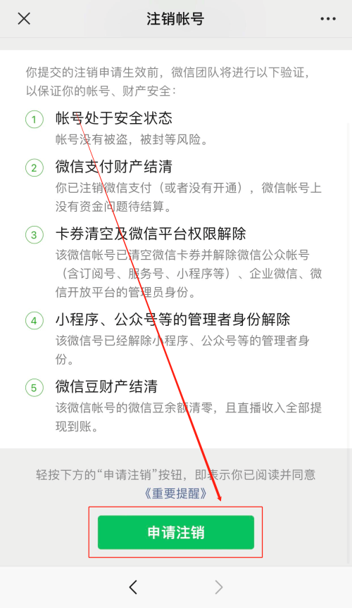 ”按钮,根据个人信息进行操作即可完成微信注销动作。
