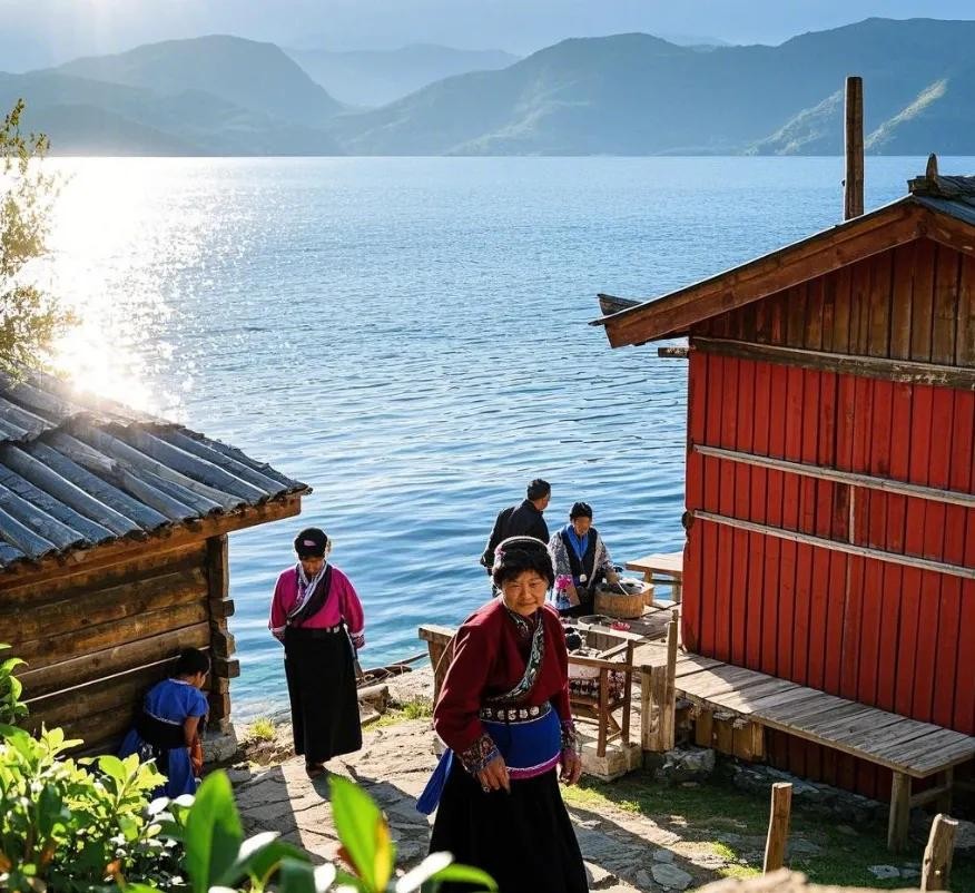 自由与平等:摩梭文化强调个体的自由和平等,在走婚关系中,男女双方都享有充分的自由。他们可以自由地选择自己的走婚对象,不受门第、财产等因素的过多限制。同时,在走婚过程中,双方地位平等,不存在一方对另一方的绝对支配或从属关系。这种自由平等的价值观是走婚习俗得以存在和发展的重要文化土壤,使得走婚成为摩梭人表达爱情和追求幸福的一种独特方式。