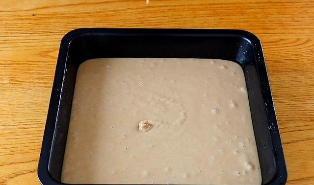 5,准备好一个盘子底部和周围都抹上一层食用油,倒入面糊震动几下去除气泡,盖上保鲜膜二次醒发30分钟。醒发好之后开水上锅蒸35分钟。