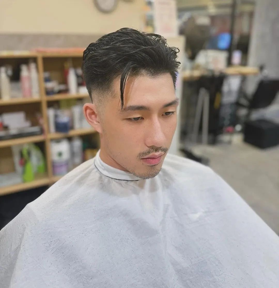 男生的背头发型,没必要像发哥那样把头发留长然后全部往后面梳。我们可以先把两边的头发铲青,然后中间的头发稍微留长,在三七分的位置打造偏分后,再把头发往两边侧后方梳,整体造型很轻熟有魅力,潮流又帅气!