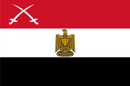 旗面自上而下由红白黑三个平行相等的长方形组成。埃及国旗于1984年10月4日启用。红色代表革命和鲜血,白色代表光明的未来,黑色代表受外国压抑的长久历史。其中中央的国徽称为“萨拉丁之鹰”,注视西方,象征日益丰盈的文明;雄鹰胸部的竖纹盾形徽章象征与穆罕默德相关的库里希部落,鹰爪下方的文字则是用阿拉伯文写的“埃及阿拉伯共和国”。