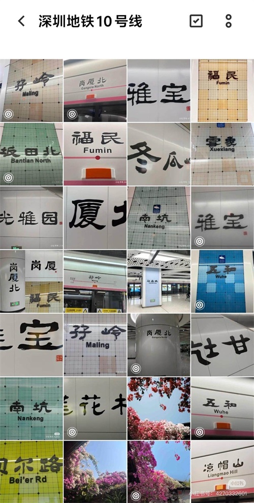 近日,网名为“姥爷的隶墨小铺”发帖,求网友发一些深圳地铁10号线站名照片,缘由是深圳地铁10号线的站名是她姥爷王朝珠写的,但是她姥爷没来过深圳,希望网友在评论区发一些站名的照片,要发给姥爷看看。这条“给姥爷寻字”的帖子在网上突然火了,网友纷纷跟帖,贴上了自己拍摄的10号线站名照片。一时间,数百张照片涌入评论区,1800多条评论,1.4万多个点赞,10号线23个站名的“现场照”很快被“接力”集齐。