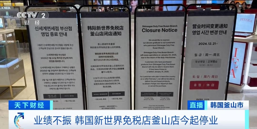 财经频道特约记者 刘峥:韩国第二大城市釜山的新世界免税店釜山店于2012年开业,然而,因业绩不振,这家免税店去年先后缩减卖场面积、缩短经营时间,但仍无法盈利,尽管免税店的经营权明年才到期,但最终还是提前结束运营,今天正式停业。