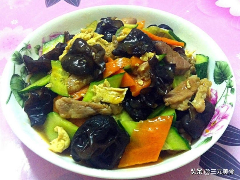 特色传统名菜木须肉:炒鸡蛋色黄而碎,类似木樨