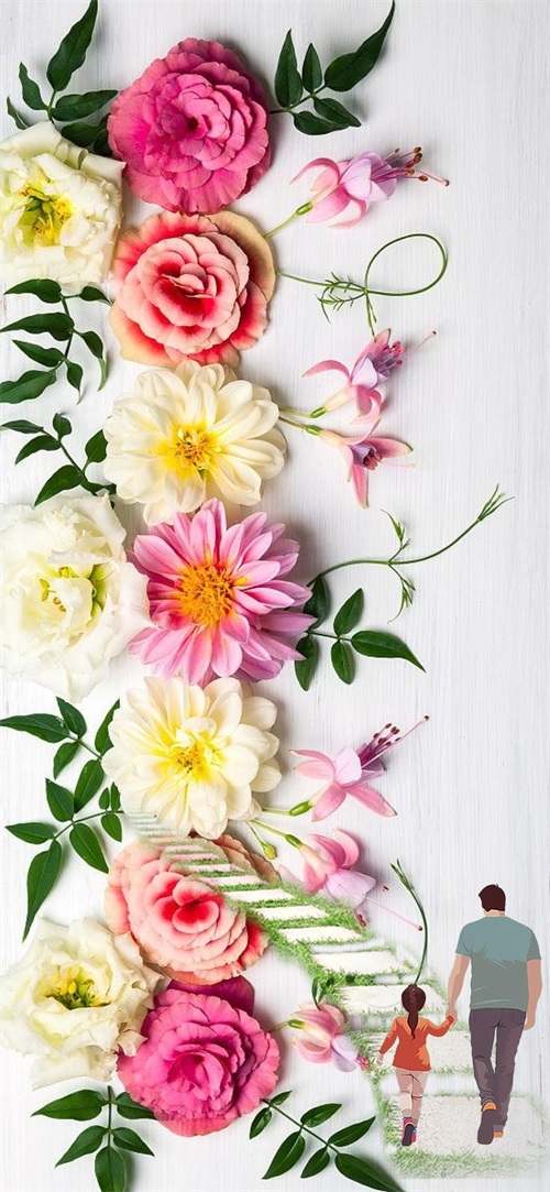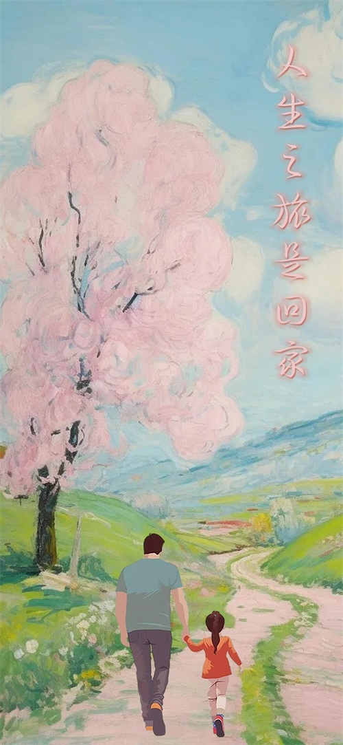 下面这张壁纸福图一刻更换了背景,父女的图片我更换了方向,脚下放置了小路图片元素。我们出发的路,还在吗?