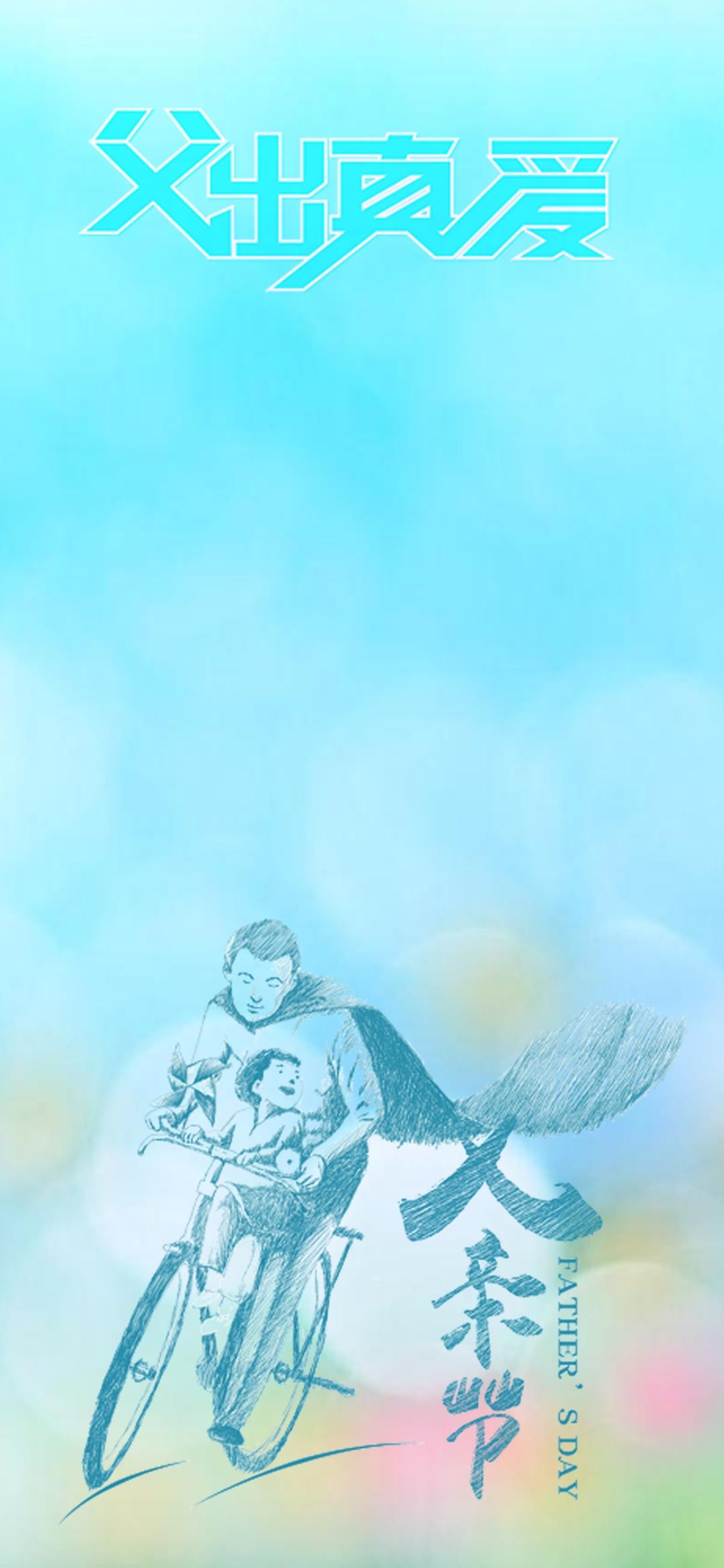 下面这张壁纸有点怀旧的意思,福图一刻在上方放置了“父出真爱”的文字元素,寓意“付出真爱”,下方放置了一位父亲自行车驮着孩子的开心图片元素。出生在六、七十年代的朋友们应该都知道这张图片的生活含义。