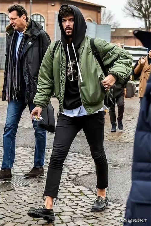 总之,要将飞行夹克穿出既有街头感又不失硬汉男人味,需要在搭配和细节上下功夫。